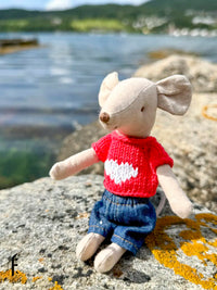Carefully hand-knitted to be the ideal fit for Maileg Big Brother or Big Sister Mouse.