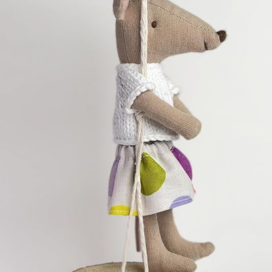 Bright, cheerful, and full of tiny joy — the Candy Dots Skirt brings playful energy to your Maileg mouse’s day. Handmade from soft cotton with colorful dots in purple, orange, and pink, it’s the perfect piece for fun adventures and sweet photo moments. Pair it with a cozy knitted sweater for an irresistibly charming look.