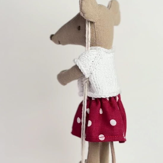 Add a touch of festive sweetness with the Snowberry Skirt — a handmade piece in deep red cotton with playful white dots. Simple, cheerful, and full of Christmas charm, it’s the perfect outfit for your Maileg mouse during cozy winter days, snowy scenes, or holiday displays. Pair it with a knitted sweater for a warm and classic look.